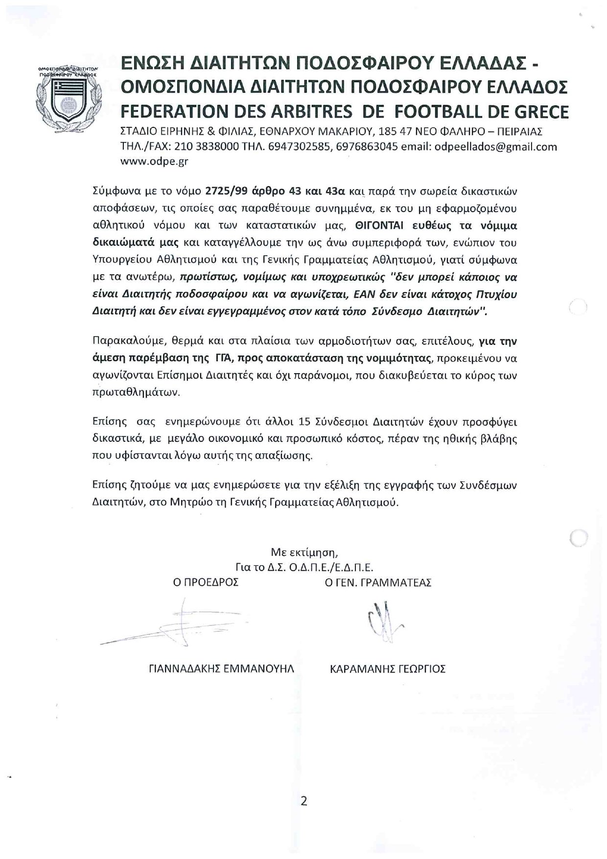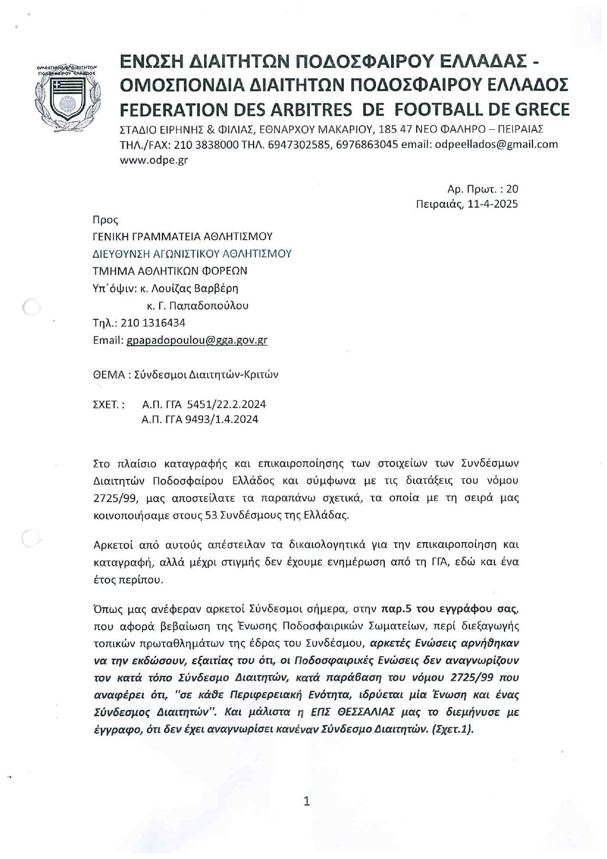 Ακολουθεί η επιστολή της Ένωσης Διαιτητών / ΟΔΠΕ:
